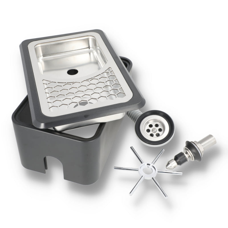 Designed to adapt the to the space where a standard 150mm rinser sits. If you’re replacing an existing square rinser (from any brand), this adapter makes it easy to install the new Mini Rinser in the same spot.