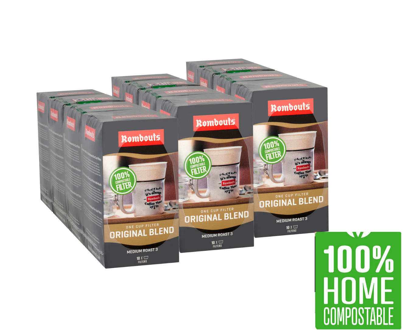 Rombouts One Cup Roasted Ground Coffee Filters 4 packs of 10 one cup 40 coffee filters