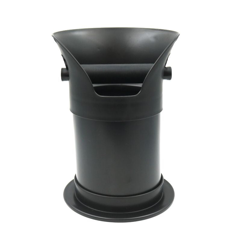 A commercial grade, benchtop knock tube perfect for smaller commercial venues and for domestic use. Designed with a focus on durability and stability, the Thumpa can withstand being hit, bashed and dropped without failing. The flared collar allows for the easy capture of excess splatter, while the slotted bar inserts allow for easy remove of the rod and rubber set for cleaning and maintenance. The top is removable for easy emptying, or for use in conjunction with a waste bag, and the whole in the top allows the user to clip a cloth to the Thumpa for improved workflow and cleanliness.