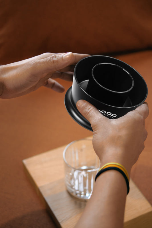 Hoop is a coffee brewer suitable for everyone. To assemble the Hoop, simply insert the paper filter into the Outer Loop and secure the Flow Tower to the Outer Loop and away you go.